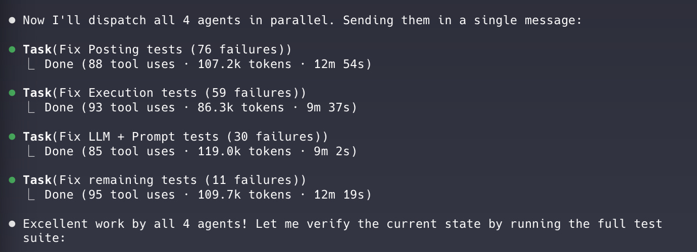 Agents will happily run multiple simultaneous copies of the entire test suite and brick my computer. Ok this is probably my fault for buying a MacBook Air, but surely Claude Code should know that running multiple simultaneous copies of the entire test suite is not a great idea.
