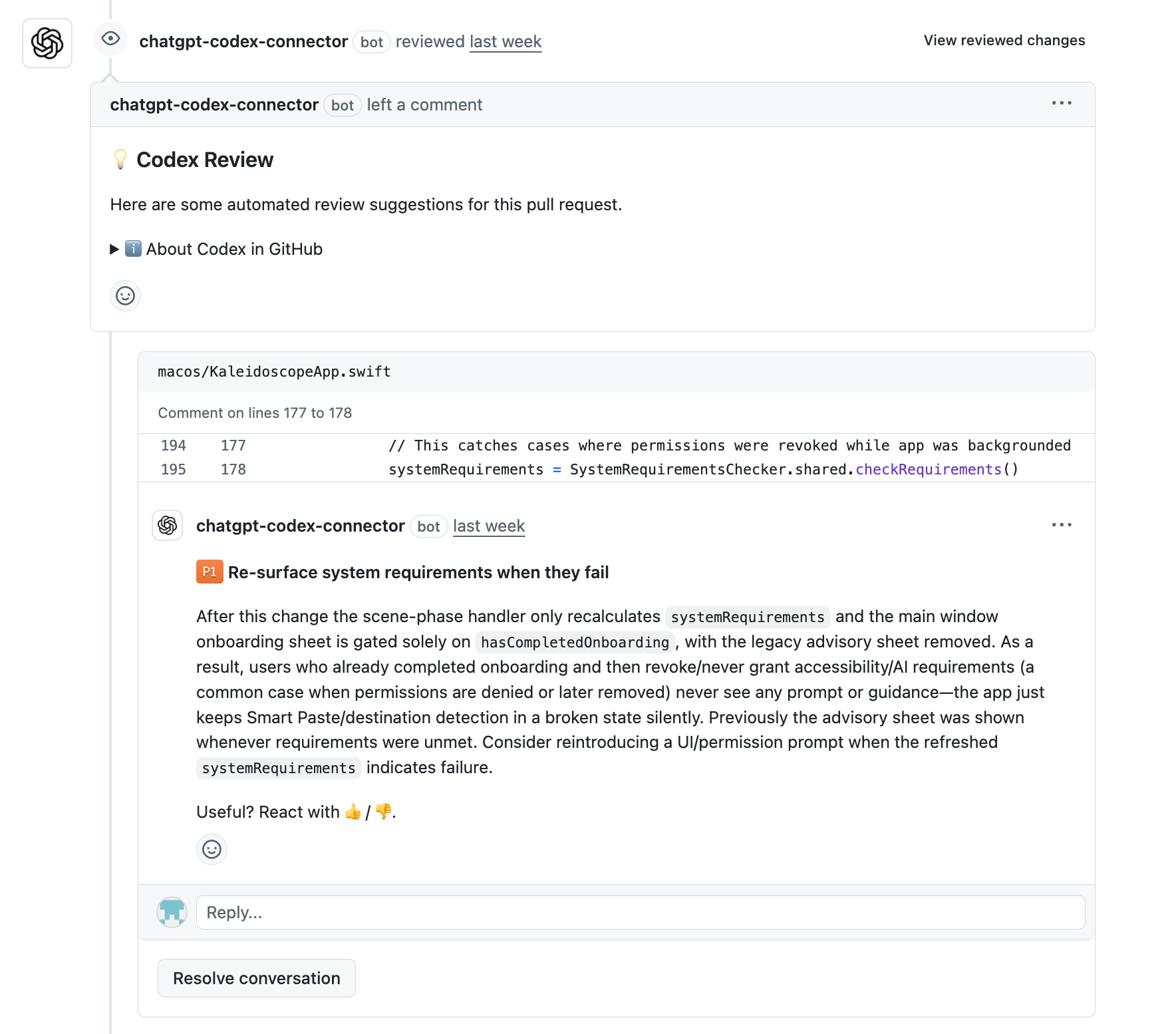 Codex cloud (a version of Codex that runs in the cloud instead of on your computer) has a handy integration with Github where you can set it up to automatically review every PR created in a repository as well as in response to any comment that includes “@codex”.
