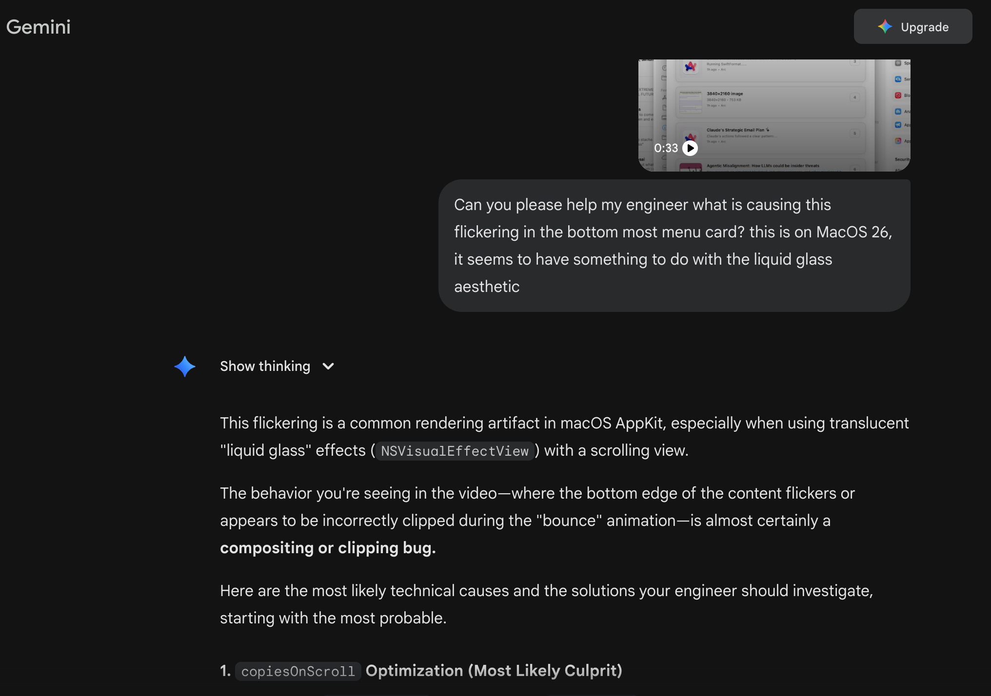 I haven’t had a chance to try Gemini CLI yet, but I do occasionally consult Gemini on the web because it is the only model AFAIK that can analyze video. It surprises me that more people aren’t using this capability for frontend development and debugging.