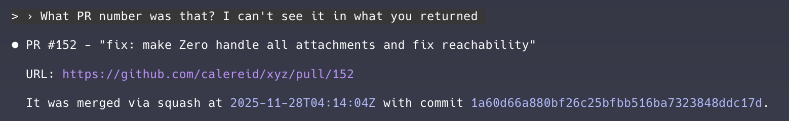 Here’s an example that demonstrates the difference between Claude Code and Codex’s personalities. Compare Claude Code’s response to this simple question about a PR: