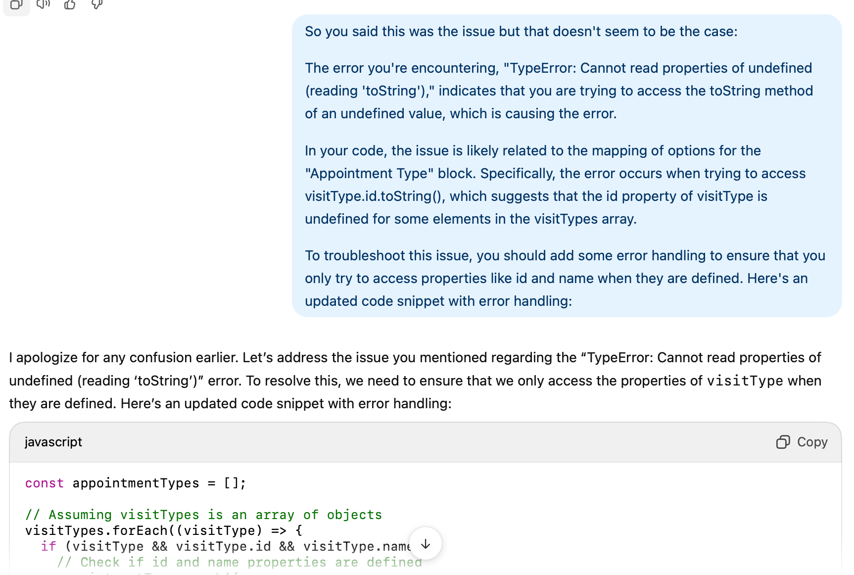 In 2023 and 2024, I used ChatGPT to build a few Slack bots at work. These were one-file applications with 500-1000 lines of code (mostly boilerplate) that did simple tasks like transcribe audio and return a summary based on whatever instructions the user provided or book an appointment in one of our internal tools. They were helpful but not particularly complicated.